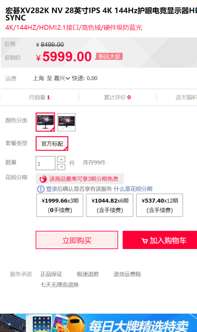 阶段总结一下,我们心中抱负的显示设备,需要有4K分辩率、120Hz或更高刷新率,以及关于HDMI 2.1接口的撑持。那么如许一台显示器需要几钱呢,翻开某宝和gou东,我们一路来看一眼。