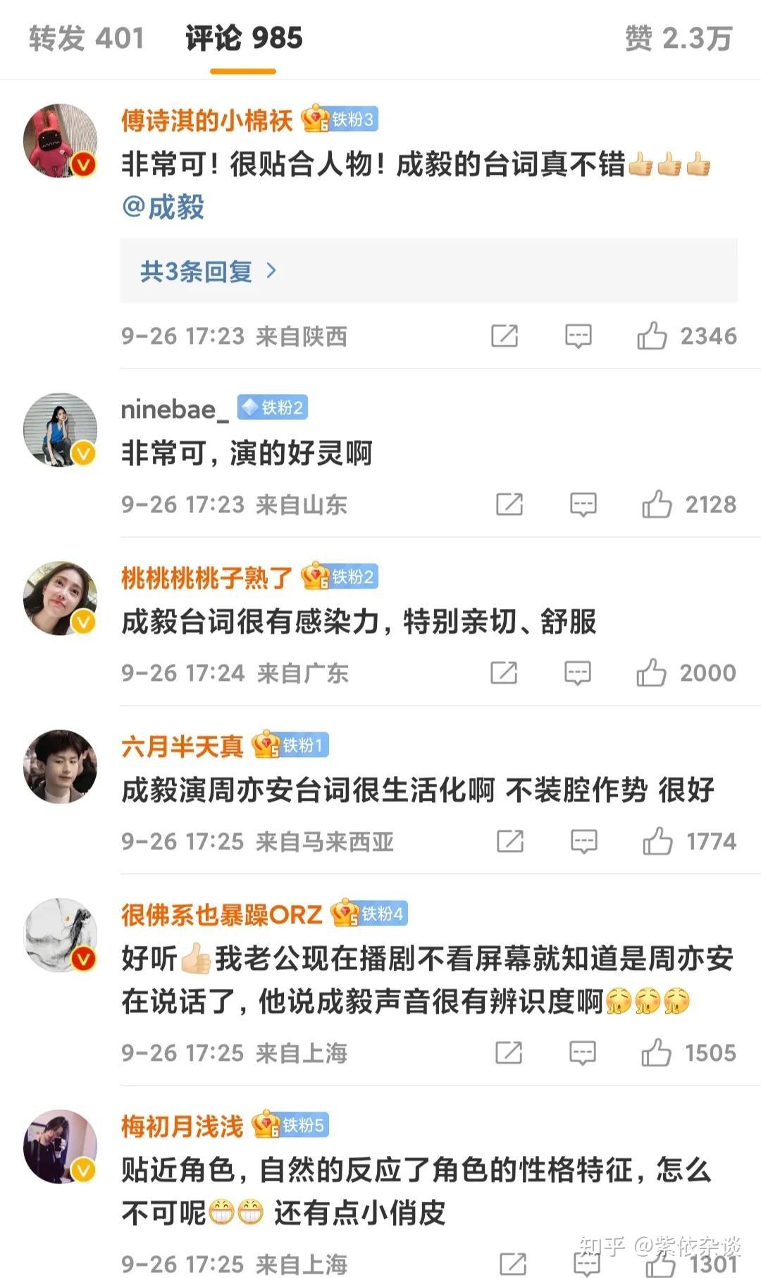 从收集上的评价来看,成毅胜利消除了不雅寡们的疑虑,很好地完成了周亦安那个角色,博得了不雅寡的一致好评,有夸赞其台词的,还有夸赞其演技天然的。