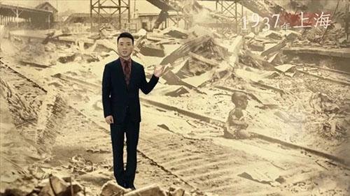 在节目一起头,主持人康辉就通过一台“光阴放映机”穿越到百年前的中国。极具视觉冲击力的今昔场景比照,展示了百年中国的沧桑巨变。当康辉置身于1937年的上海火车南站中时,废墟中硝烟洋溢,婴儿的啼哭似乎就在耳边。但陪伴着一列列高铁列车吼叫而过,我们又霎时置身于新时代,配合踏上全面建立社会主义现代化国度的新征程。