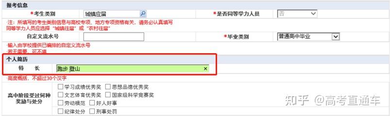 据说有很多同窗纠结那个“特长栏”该怎么填,其实那一栏内容没有打上*号,可填可不填。但若是各人要填写的话,仍是能够写上一些本身最凸起的长处,好比“写做”“绘画”“唱歌”等小技能。