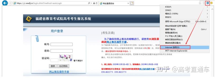 (1)进入【教育测验院官方网站-高考高着儿-高考考生报名系统】,点击阅读器右上角【设置-兼容性视图设置】: