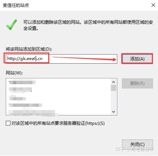(3)让复选框设为未选中形态或在输入框输入“gk.eeafj.cn”,点击【添加】: