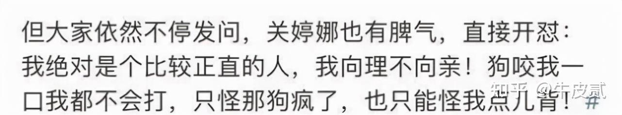 关于网友们的询问,关婷娜也很爽快地给出了回应,她说:“……那狗疯了,也只能怪我点儿背。”
