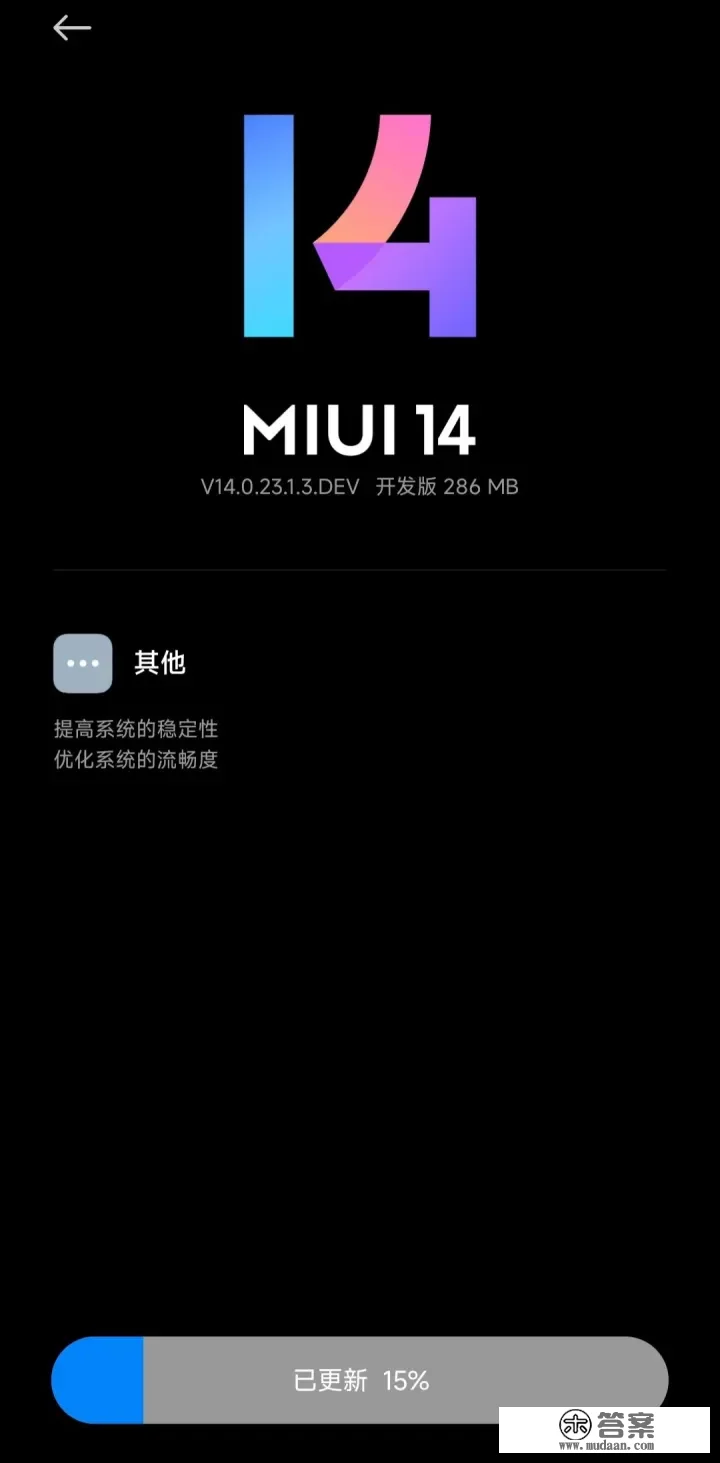 而若是是 MIUI 14 开发版的话,需要 MIUI 内测权限才能够一般收到 OTA 系统更新推送,当然也能够再次通过上述的“替代法”来手动更新。