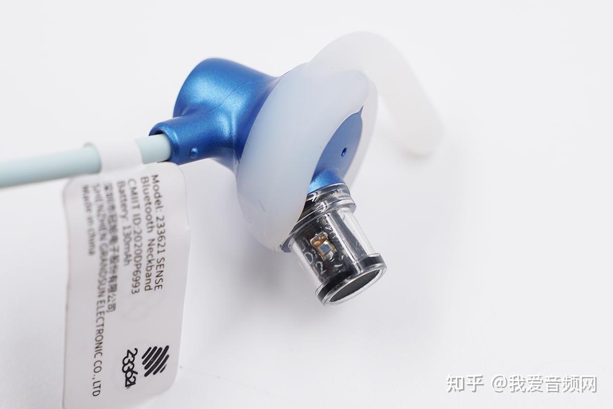 233621 Sense颈挂式体温心率监测蓝牙耳机接纳了对称式设想,摆布各设置有零丁的腔体,提拔佩带平衡性。此次评测利用的为天际蓝配色,通过线控、颈带、耳机线三种差别的蓝色深浅变革,提拔产物的条理感和量感。