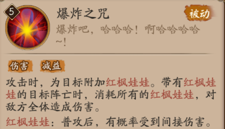 猫掌柜和弈老板一路退役的魂十收尾式神,发作需要跳过一回合,有点反向蟹姬的味道但差距也恰是那个冷却回合前置后放的缘故
