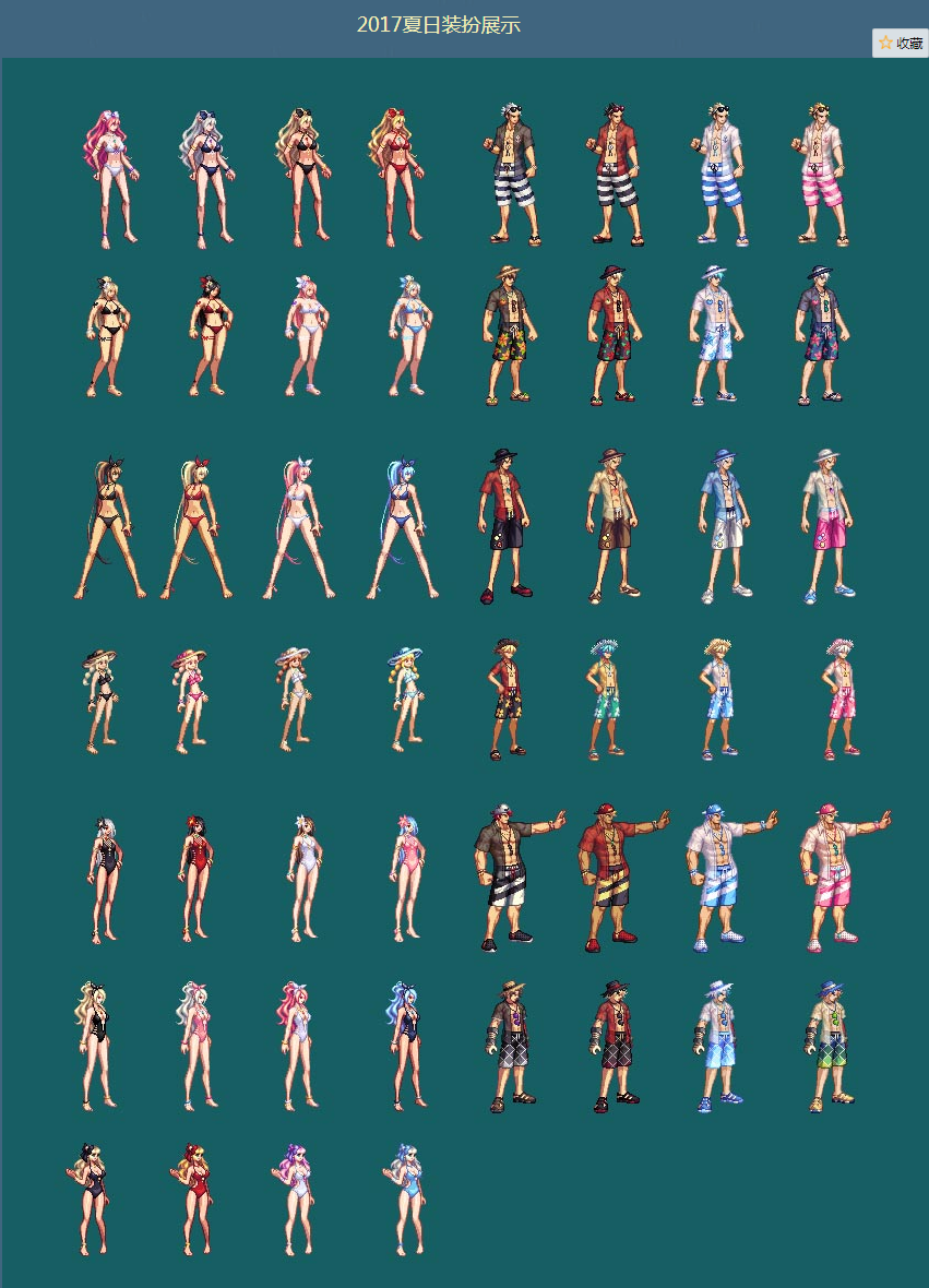 2017年夏季套,那套外不雅失实不敷都雅,男女职业都不太行,但是女职业全系裸足、女鬼剑的深V泳衣仍是不错的,男职业的凉帽能够灵魂COS路飞。