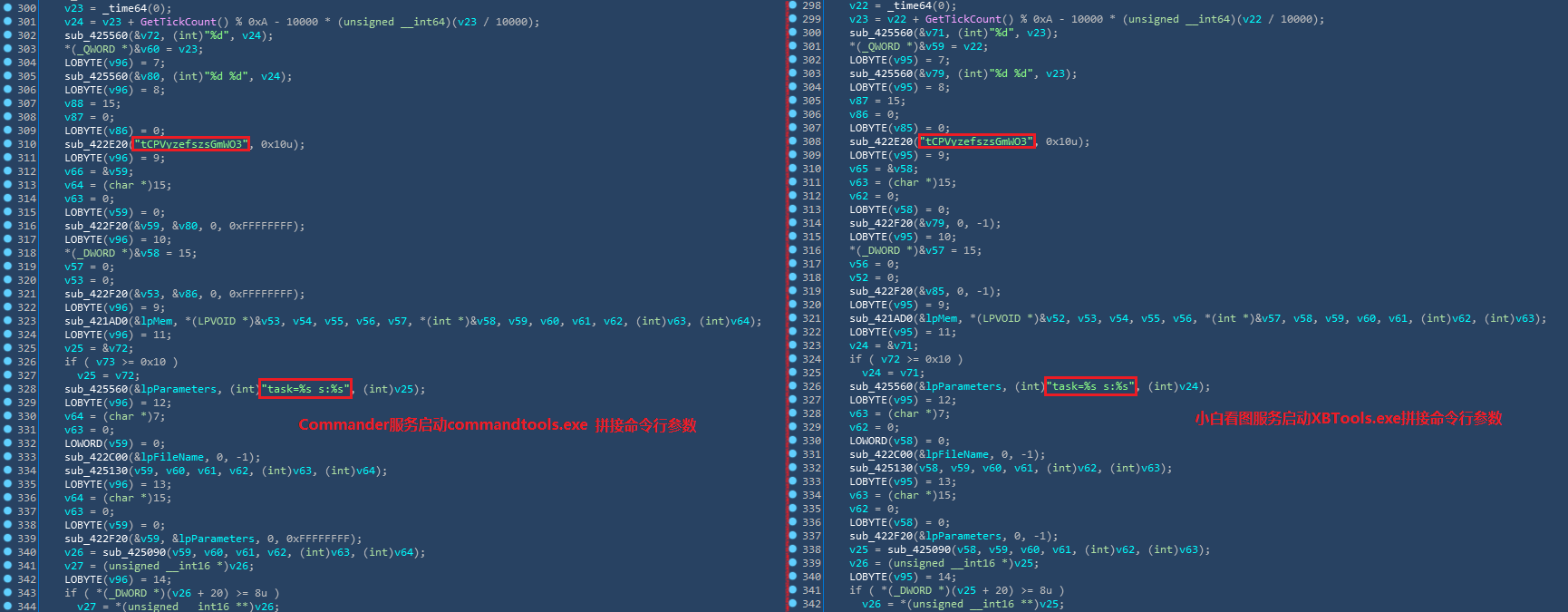 颠末阐发我们发现,被commander寂静推广的软件(小白看图、趣压、拷贝兔等),与commander系为统一做者编写,且安拆后都带有与commandtools.exe不异的歹意功用模块。在那些被推广的软件config.dll设置装备摆设中,暂未发现下载appupdui.exe的相关设置装备摆设,但不排除未来下发其他歹意功用模块的可能性。相关代码同源性比照图,如下图所示: