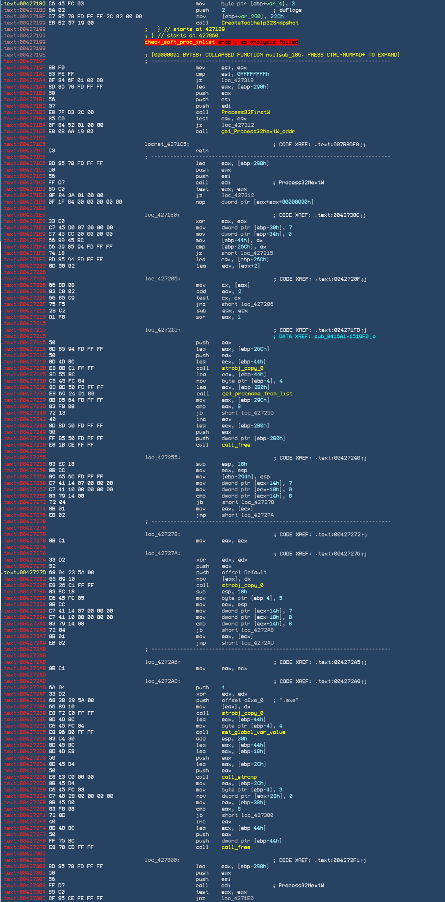 通过遍历历程的体例检测软件情况,相关代码如下图所示: