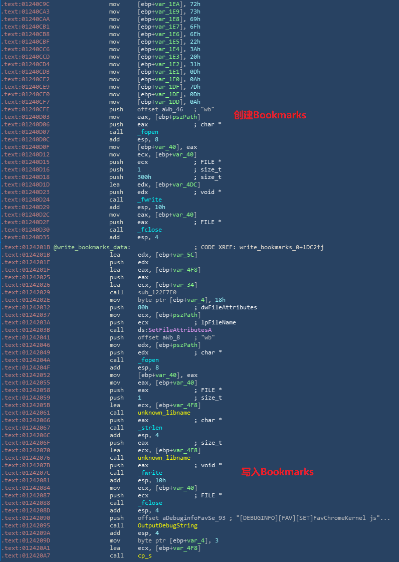 创建并写入书签相关代码