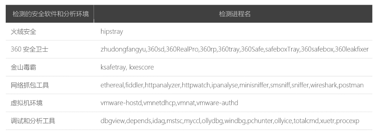 appupdui.exe在运行时会按照设置装备摆设通过列举历程名的体例对系统中的软件情况停止检测,除此之外还会检测当前IP所在城S,被检测的城S包罗:北京、上海、广州、珠海、杭州、西安、马鞍山、苏州、武汉、天津、合肥。被检测的历程,如下图所示: