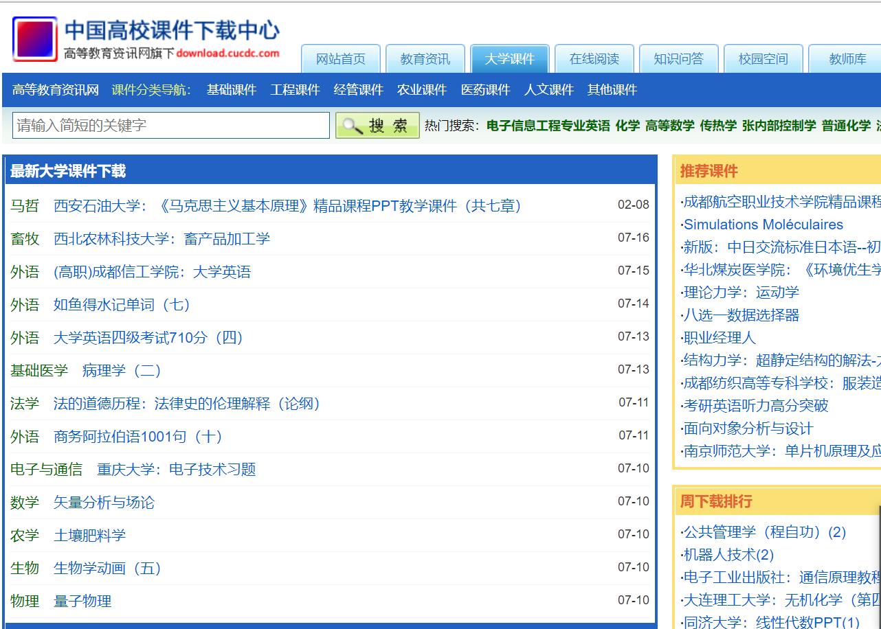 十一、电子书下载网站 1、中国高校课件下载中心中国高校课件下载中心是综合性的教育资本交换平台,供给全国各DX课件下载。