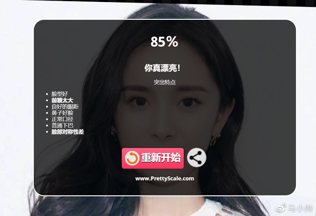 其实 Prettyscale 那个网站对你上传的照片要求仍是挺高的,统一小我差别的照片,有时候成就颠簸都能到达 3、40 分,并且还应付不了化装、P 图那种妖术,最合适的反而是你的证件照。