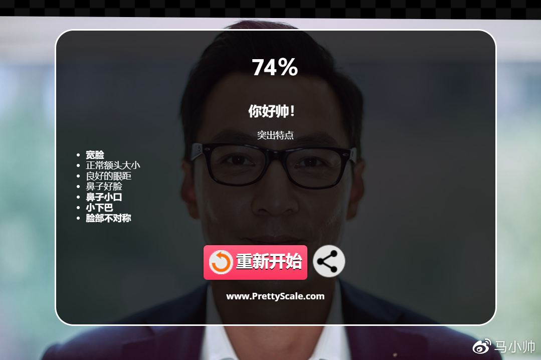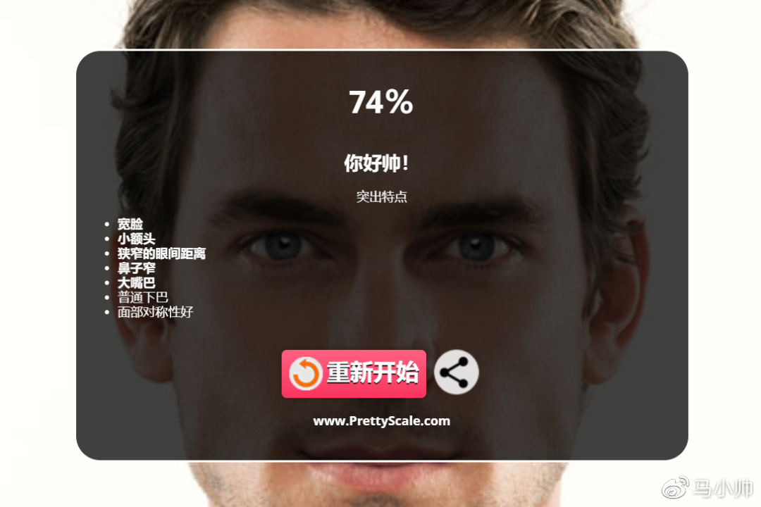 最初稍等几秒,Prettyscale 会为你供给的人物照片打个分,还会总结出你的凸起特点。