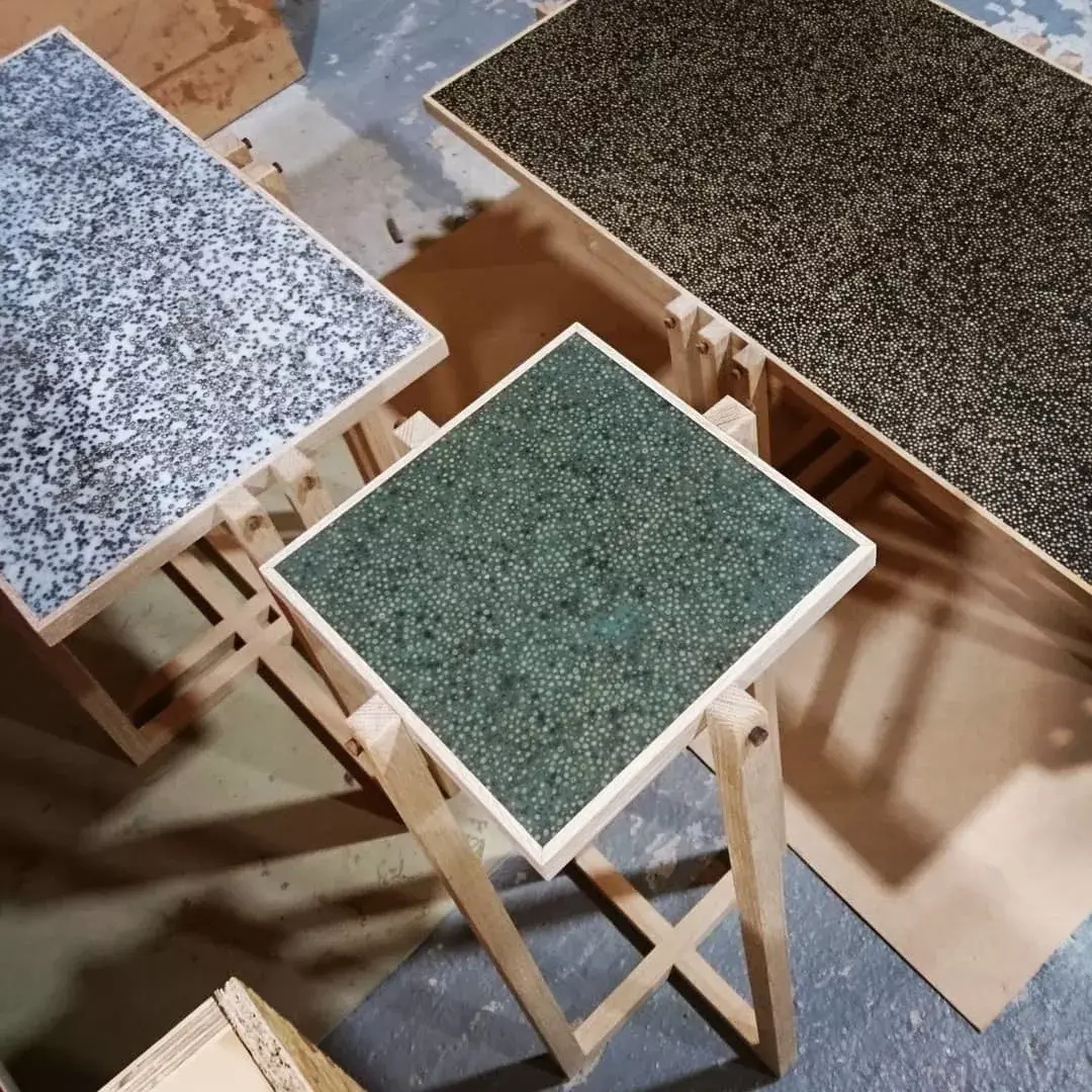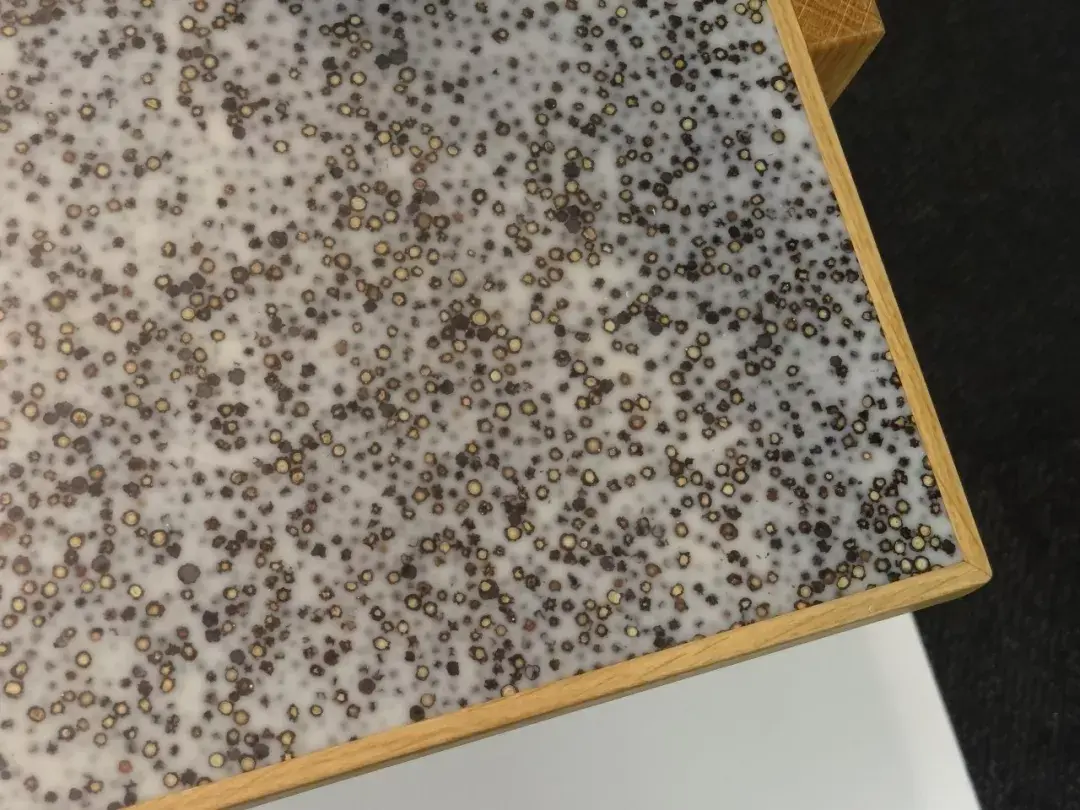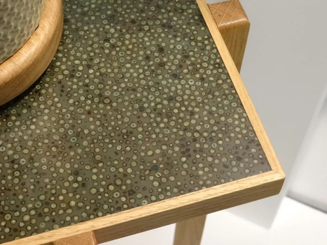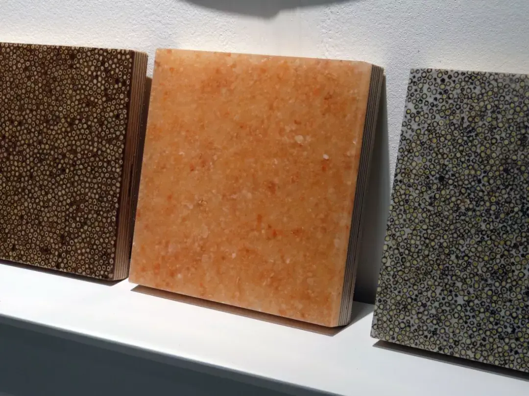 家具设想师Laurent Peacock在年度新晋设想师大展上崭露头角,他展现了一组由树脂、干胡椒或粉色喜马拉雅盐混合而成的外表质料。
