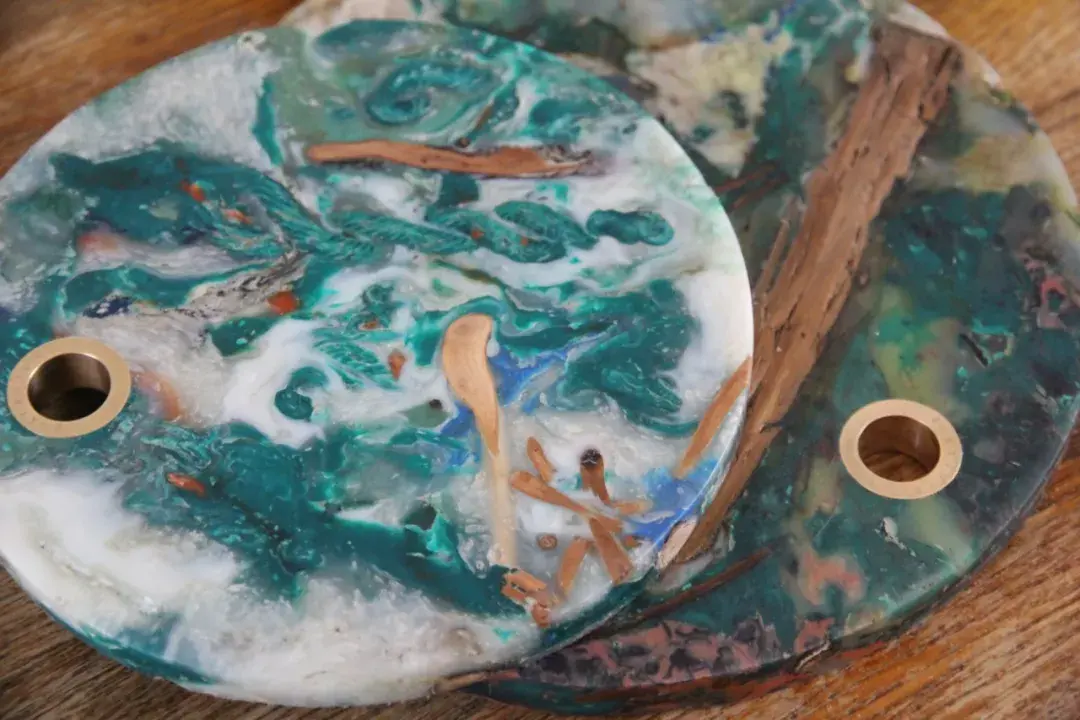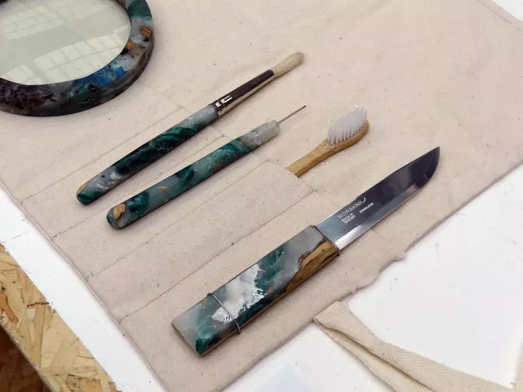 Toni创造了一种塑料石头,原料来自于英格兰东南海岸,在苏塞克斯搜集的浮木、绳索和塑料烧毁物颠末加工处置,能够造做成色彩斑斓的厨房和餐具用品。