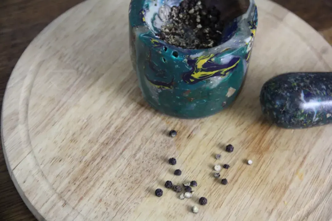 通过将胡椒粒根据同样深度镶嵌,再手工从头编排,还能够创做出愈加一致的图案。