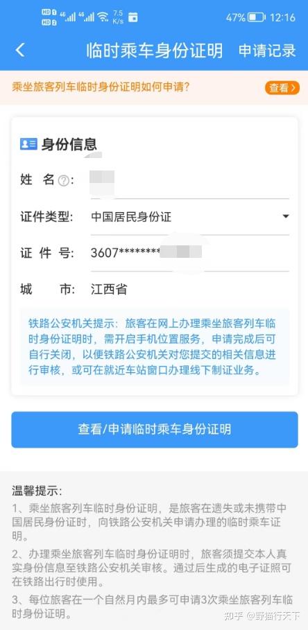 本年过年回家忘带身份证了,坐火车、进出站、直达都没有用身份证,用的是铁路12306软件上的临时身份证,那功用确实不错,以后出门就不消带身份证了。