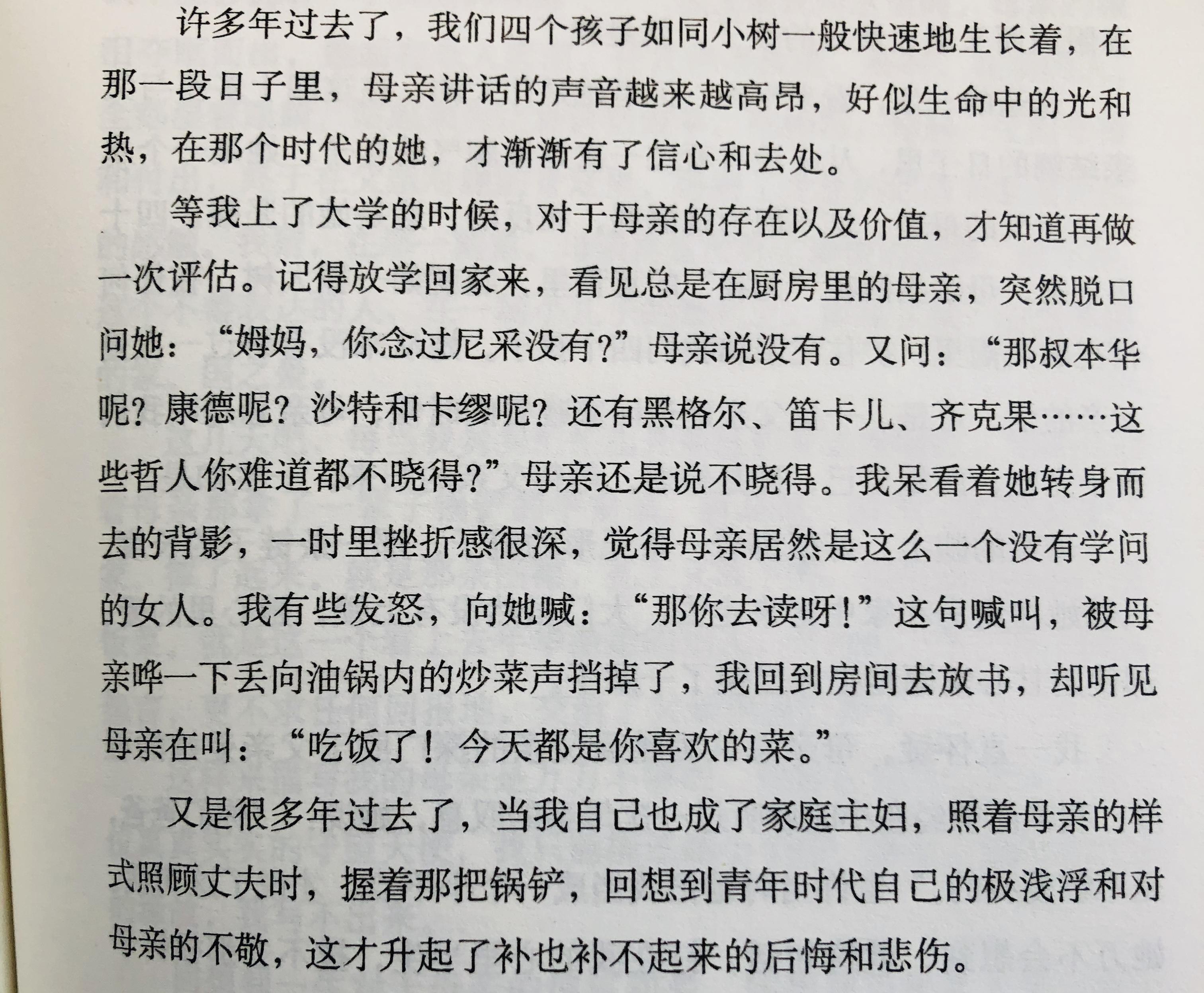 ●“一旦父亲延迟回家晚餐的时候,母亲老是叫我们孩子先吃,而她本身,硬是饿着,等着父亲的归来。一生如是。”