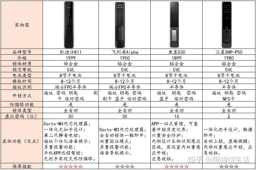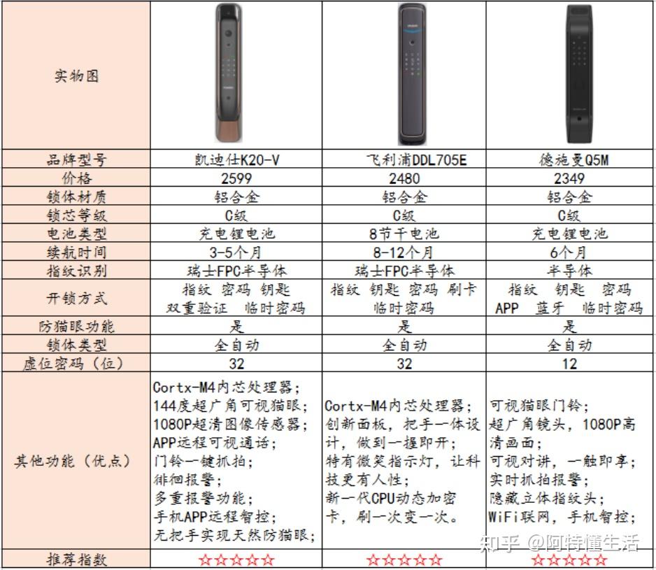 选购建议:2500摆布价位的那三款都很保举,功用都很强大。保举凯迪仕的K20-V型号和德施曼的Q5M型号都配备了144度超广角可视猫眼,1080P超清图像传感器,以及实时抓拍报警,愈加平安和智能。飞利浦的DDL705E型号,电镀+烤漆的外不雅十分高级,是颜值党的首选,别的它特有的浅笑指示灯,让科技更有人道,逃求高级感和颜值的小伙伴能够考虑。