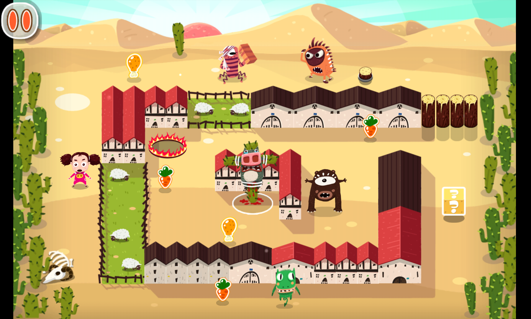 《放了那只猪》是款益智休闲游戏;某男,在与萝莉小女友约会时,竟被路过的FFF团宠物酿成了猪!于是我们蠢萌的萝莉起头了一遍遍拯救男友的路程——没错,每一关都要把被五花大绑的猪救出来一遍。摊上只猪男友,也是艰苦啊~