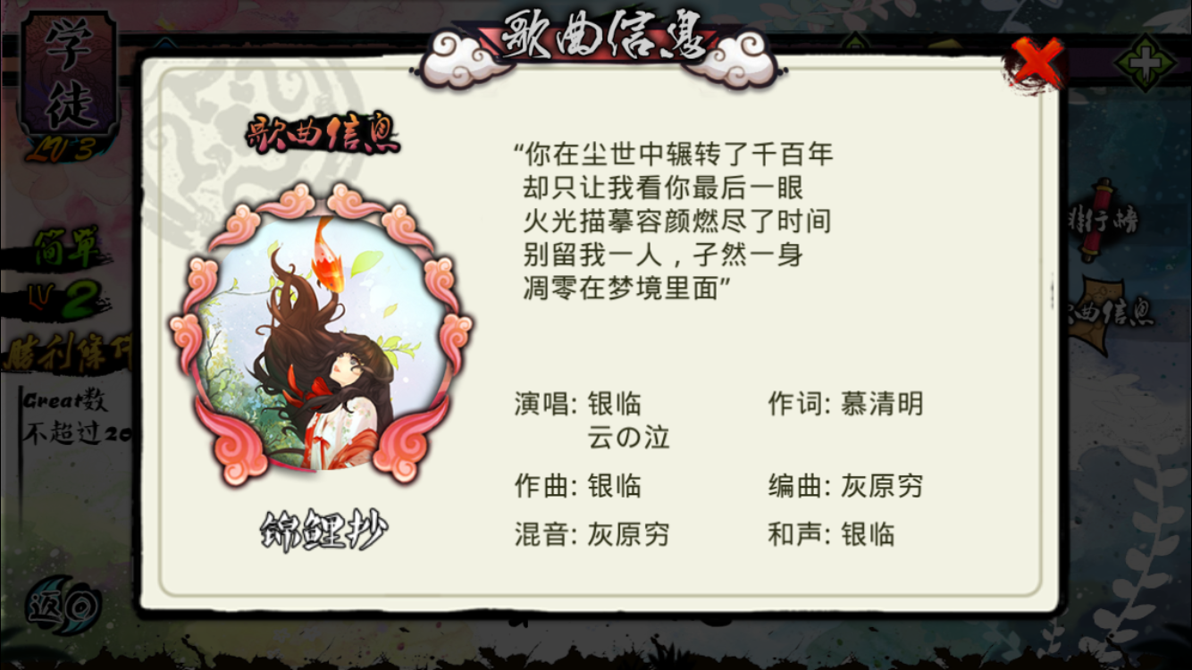 《大琴师》是由猫爪游戏独立开发的下落式音乐游戏,按照花朵呈现的位置停止点击或长按画面获取分数。曲目大多来自于古风圈创做者们的原创,浓浓中国风十分冷艳。分为挑战、自在和打榜三种形式,修炼成大琴师之余,还能与全世界的玩家比拼琴技。