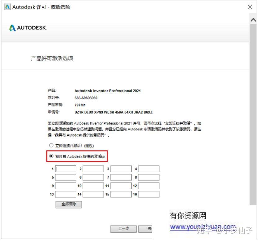 27.再将注册机界面中“Activation”栏后面框中生成的字母串全数复造粘贴到安拆界面中的第一个小框中即可主动填充,然后点击【下一步】,留意:复造粘贴只能利用快速键Crtl+C、Crtl+V