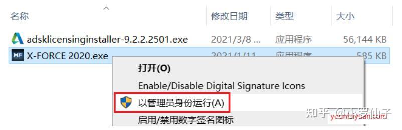 24.再次翻开Crack文件夹,找到X-FORCE2020.exe,鼠标右击选择【以办理员身份运行】,留意:必然要“以办理员身份运行”注册机,否则会安拆失败