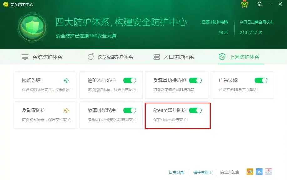 1、360平安卫士“Steam盗号防护”全面升维, 7项防护层层拦截Steam盗号攻击,全方位保障用户帐号平安,建议广阔用户马上登录http://weishi.360.cn,下载并安拆360平安卫士,即可开启“Steam盗号防护”,庇护小我隐私及财富平安。
