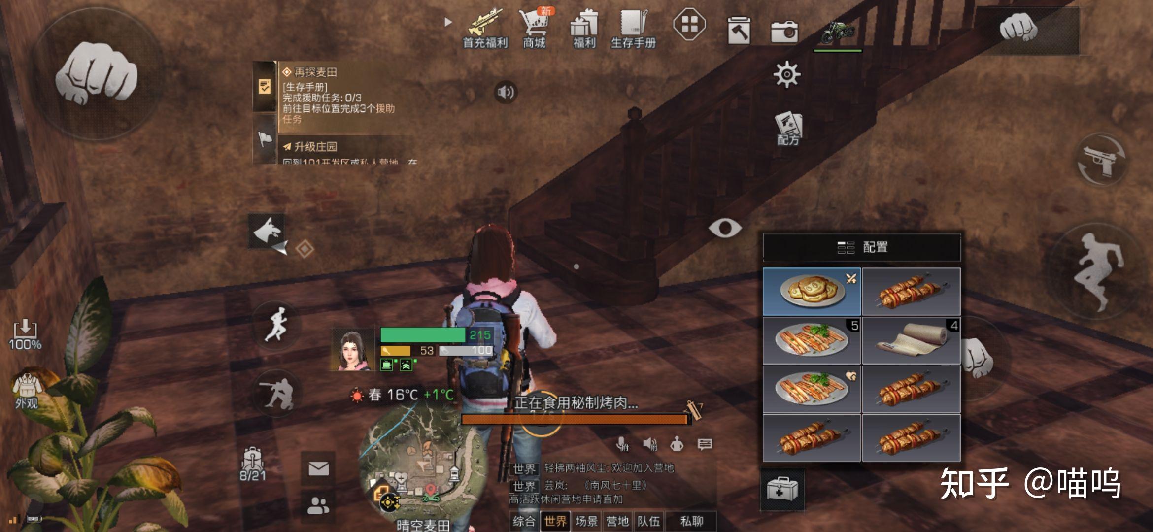 “不要急着回家,先通过砍树,挖矿,撸麻,采果食把收罗经历肝到5级!此时不吃食物情况下肝不会饥饿奥!”
