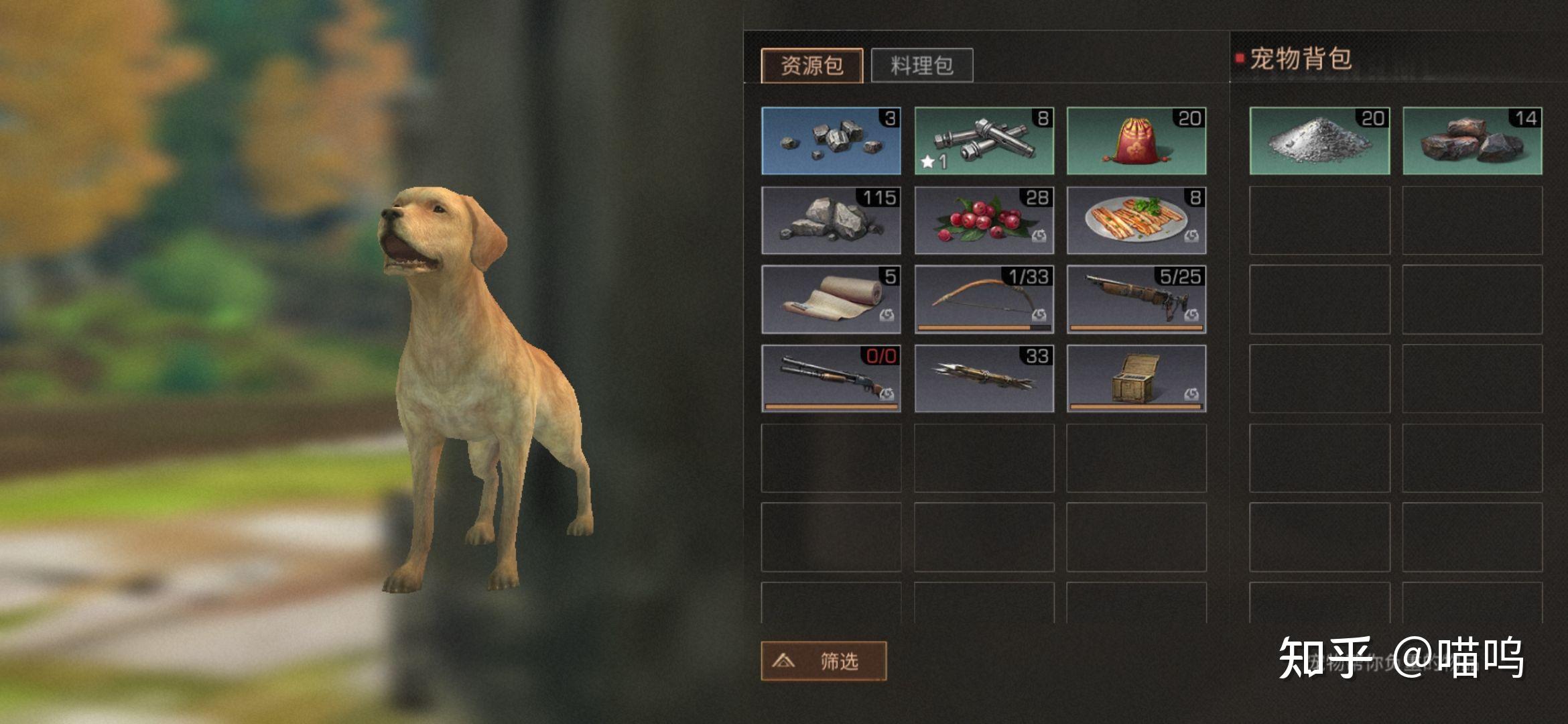背包满了不要慌,别忘了狗狗是我们的好同伴。(必然要记得给狗狗背包里丢14块铁矿奥!后面有大用!)