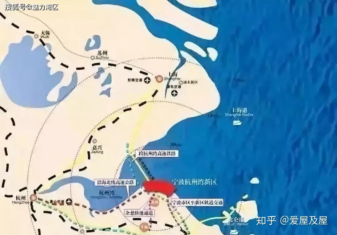 【铁路】:杭州湾新区通宁波(宁慈轻轨S3)杭州到宁波高铁(杭甬高铁)轨道交接:跨杭州湾高速铁路到上海45分钟,杭州S3号500米至杭州25分钟。