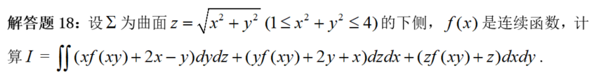 【总结】关于第二类曲面积分,历年考研大多考察高斯公式,但本题另辟门路,被积函数是笼统函数