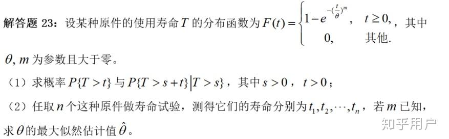 【阐发】已知散布函数,能够求肆意事务的概率,第一问很简单。第二问也是一个中规中矩的求更大似然估量的问题。对更大似然函数,先取对数,再求导,最初求得极值,尺度一套流程。