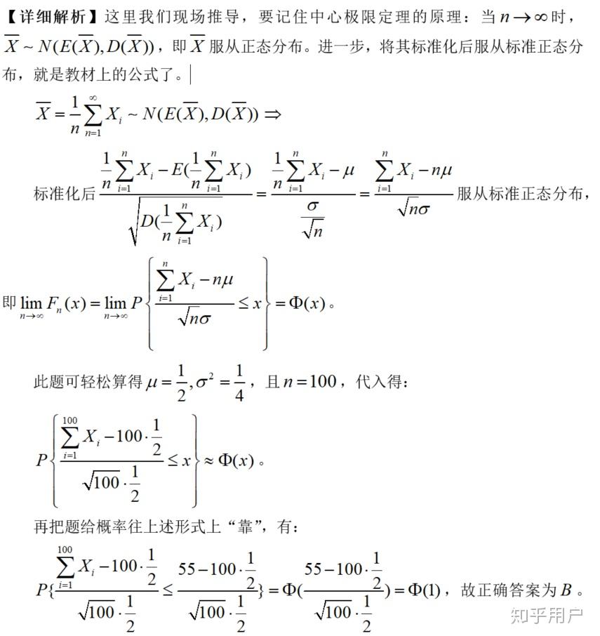 【阐发】本题间接考察中心极限制理,能够间接背公式,也能够记住原理,现场推导。