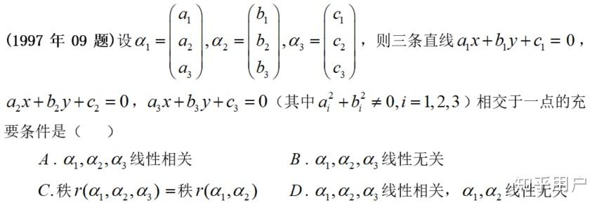 【阐发】“订交于一点”那个前提能推出什么结论呢?就是联立两个方程,但那个方程是点向式的,转化为参数式才便利联立。选项都是关于线性相关性和线性表出的,操纵定义,找出关系即可。