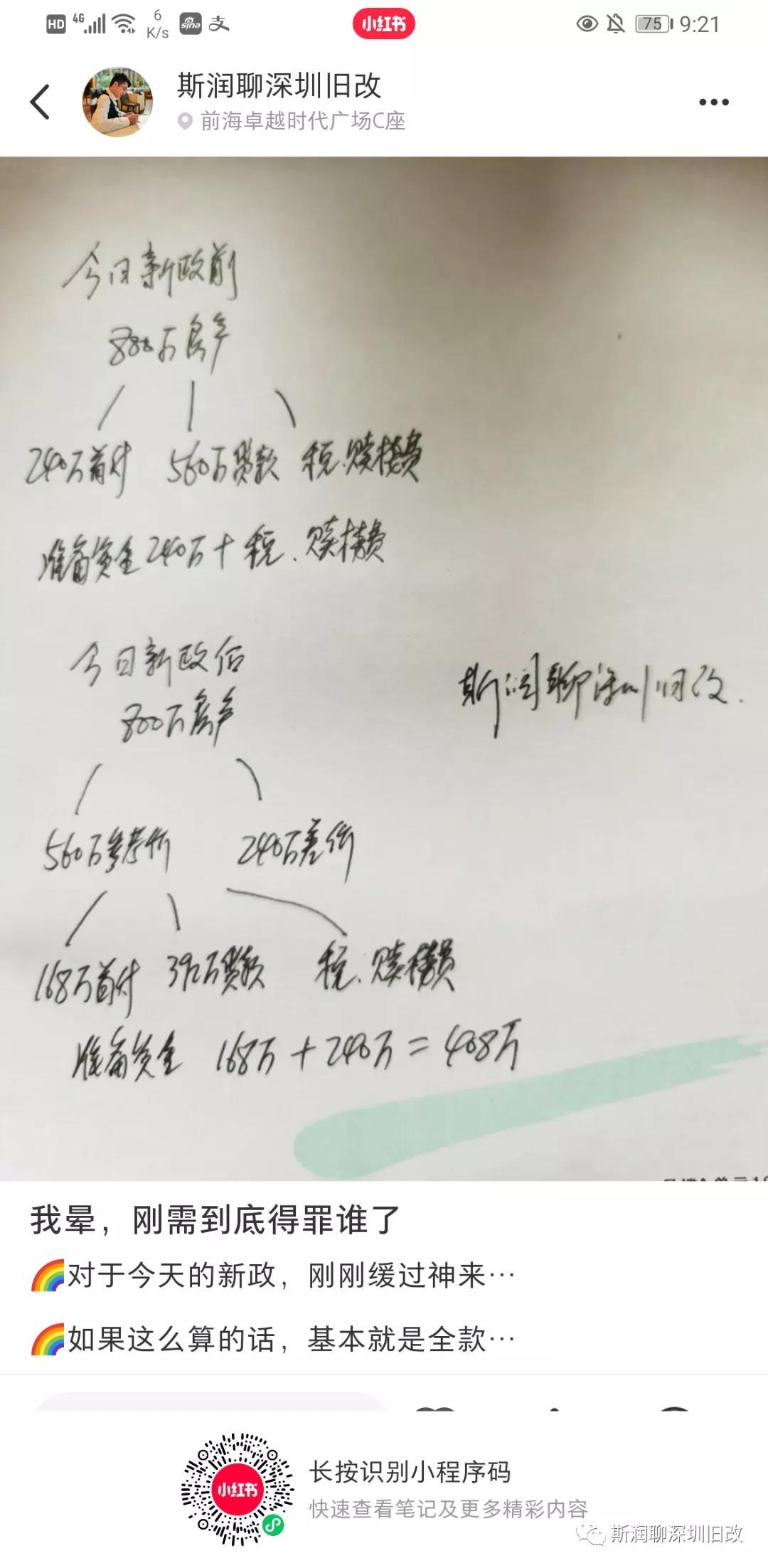 今天看完的第一反响就是首付变相进步了,以前S场价2000万的二手房首付3成才600万,但如今参考价格可能才1500万,那么首付3成是450万,还有500万的差价,首付总共需要950万。
