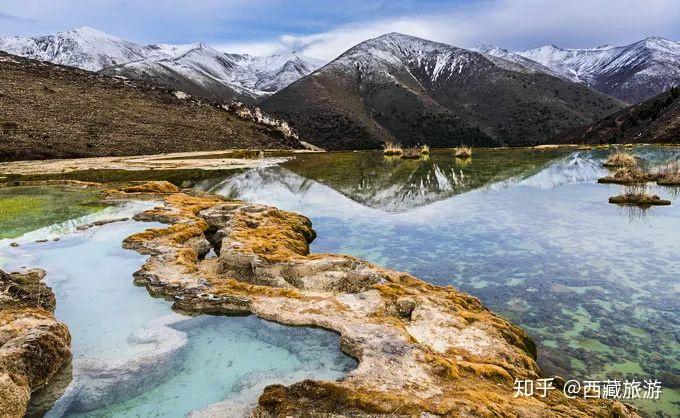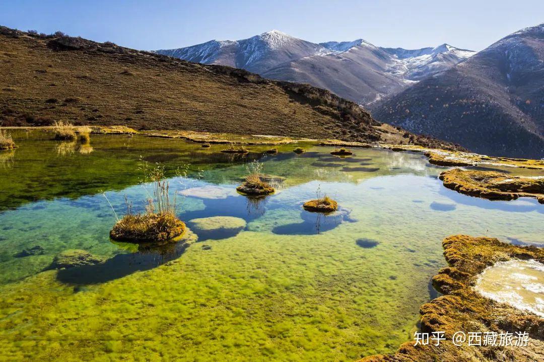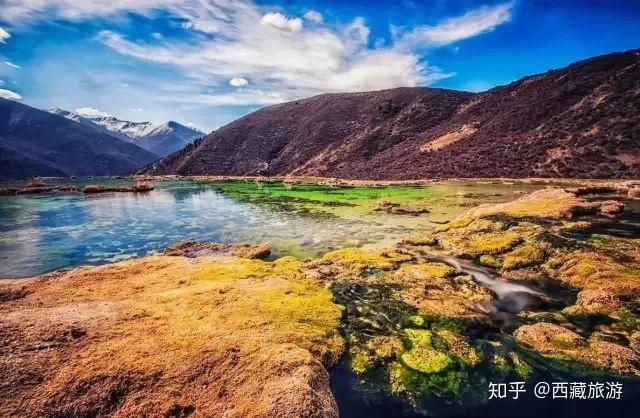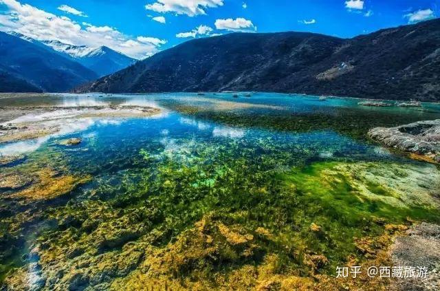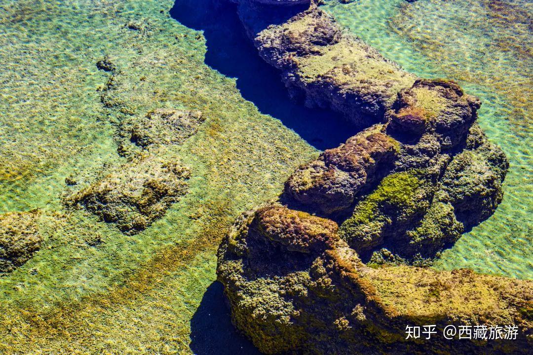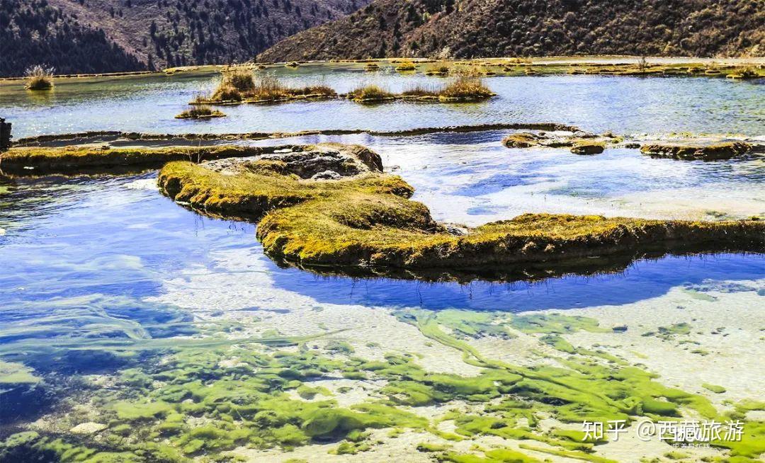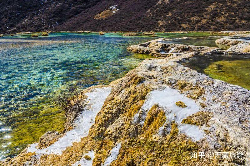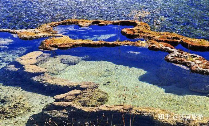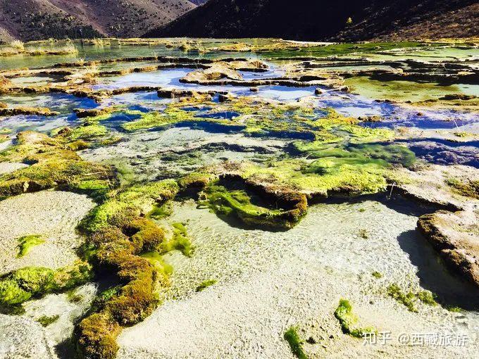 阳光下,泉华滩的水显得非常清亮,斑斓的水景还会跟着阳光的挪动变更出纷歧样的颜色,像一个个五光十色的梦境......