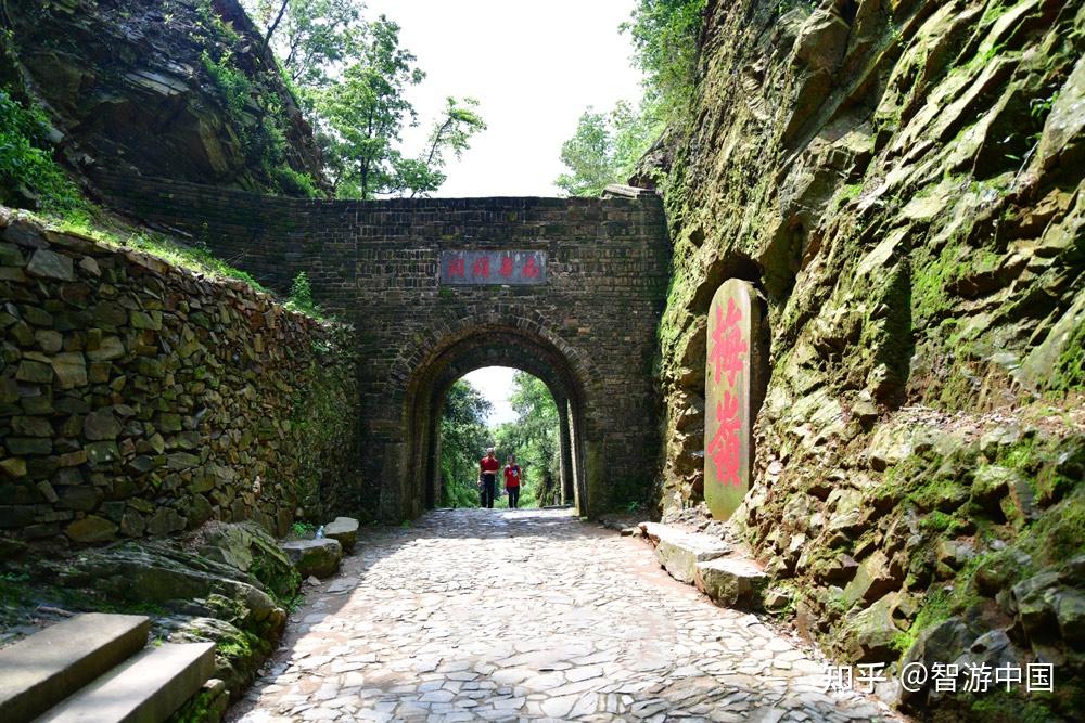 梅关古道位于广东S南雄S约30公里梅岭顶部,是全国保留得最完好的古驿道。古道约6尺宽,路面整齐地铺着鹅孵石,道旁是茂盛的灌木丛,两侧山崖树木碧绿,层峦叠翠。