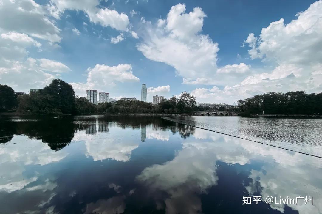 以澄净的大面积湖面为镜子,蓝天白云倒映此中,说那里是广州的天空之城也毫不外分。