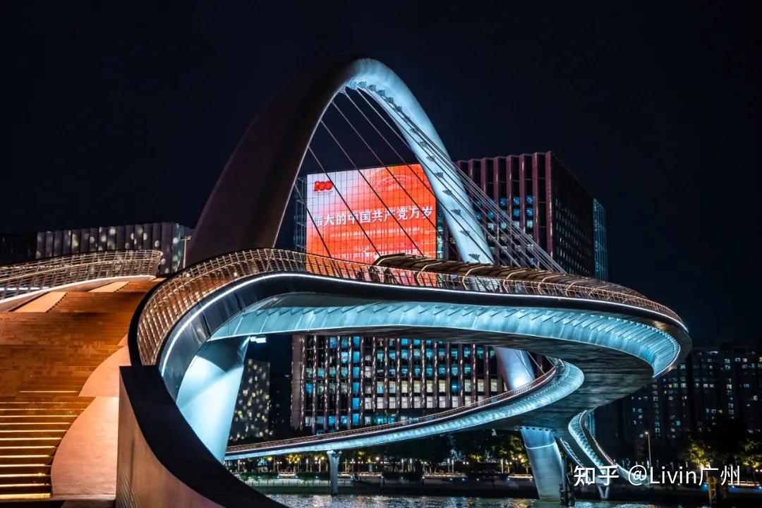 海心桥将海心沙、二沙岛和广州塔毗连起来,是世界上目前跨度更大、宽度最宽的曲梁斜拱人行桥。实正来看过之后,立马就能体味到那个头衔的份量。