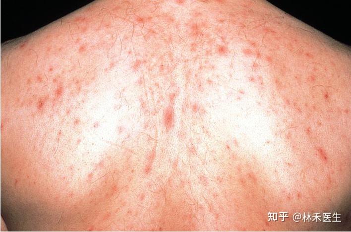 2皮疹 该图片有可能会引起不适 继续查看皮疹特点:急性期皮疹的持续时间短暂,lapins等[12]的一项22 例急性期皮肤黏膜特点的研究发现,大大都患者在发热二三天后呈现皮疹,表示为数量不等的曲径 0.5~1 cm、卵形或圆形、暗红色到深红色斑疹、 斑丘疹。鸿沟清晰,不交融。无自觉症状。次要散布在 上胸部,尤其在领圈区。也可发作在面部,额头和头皮,四肢少见。皮疹一般持续 5~8 d。在所有症状中,诊断急性HIV-1传染敏感性最强的症状是发热和身体不适感,特异性最强的量变是体重下降和口腔溃疡。也有研究表白当发热和皮疹同时呈现时,陪伴口腔溃疡和咽炎,是最有价值的目标。