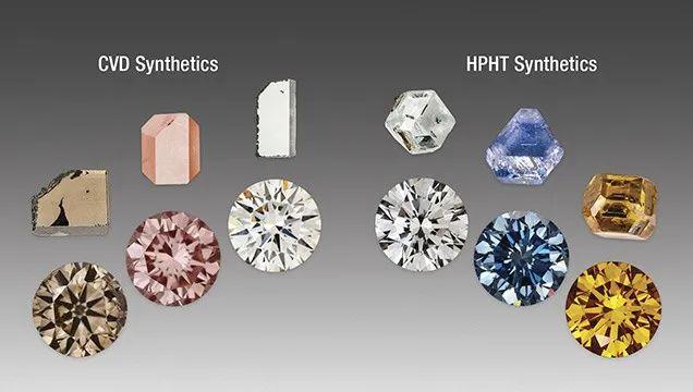 CVD法合成钻石(左)和高温高压合成钻石(右)GIA