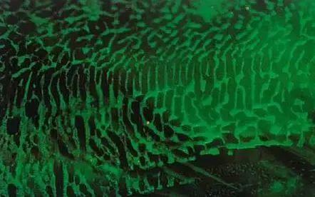 HPHT钻石在短波下有黄-橙黄-绿黄色荧光;在阴极发光下可见规则的图案。