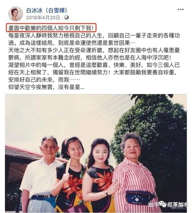 母亲逝世不久,白冰冰就在社交媒体上,晒出昔日一家人的照片慨叹: