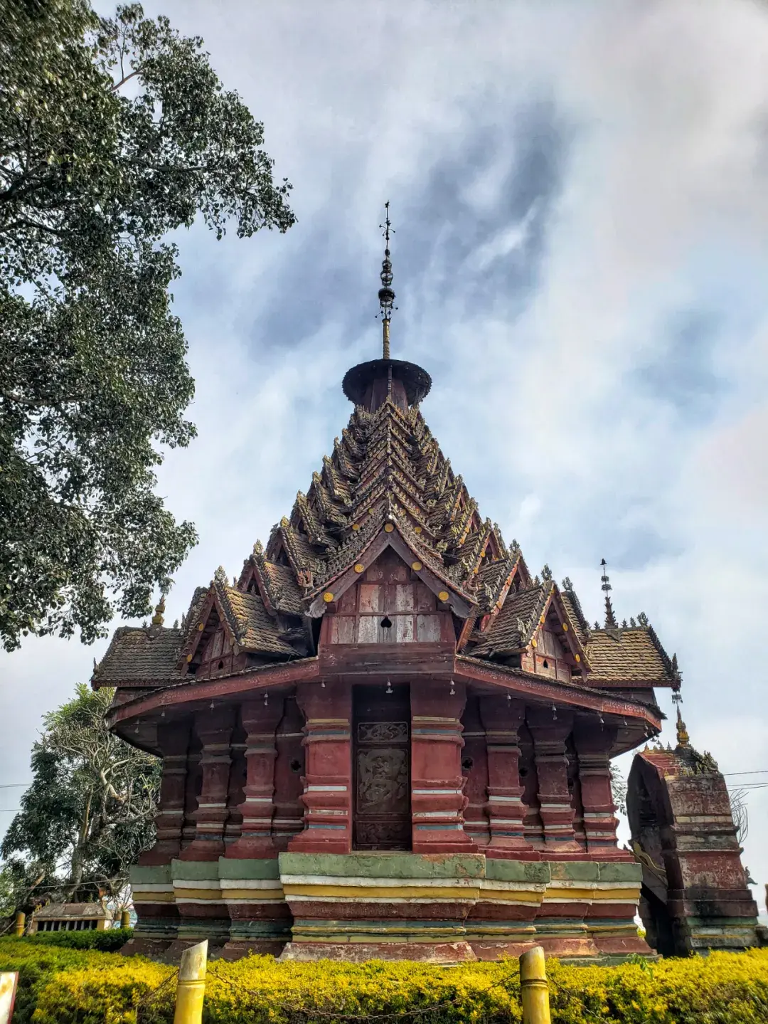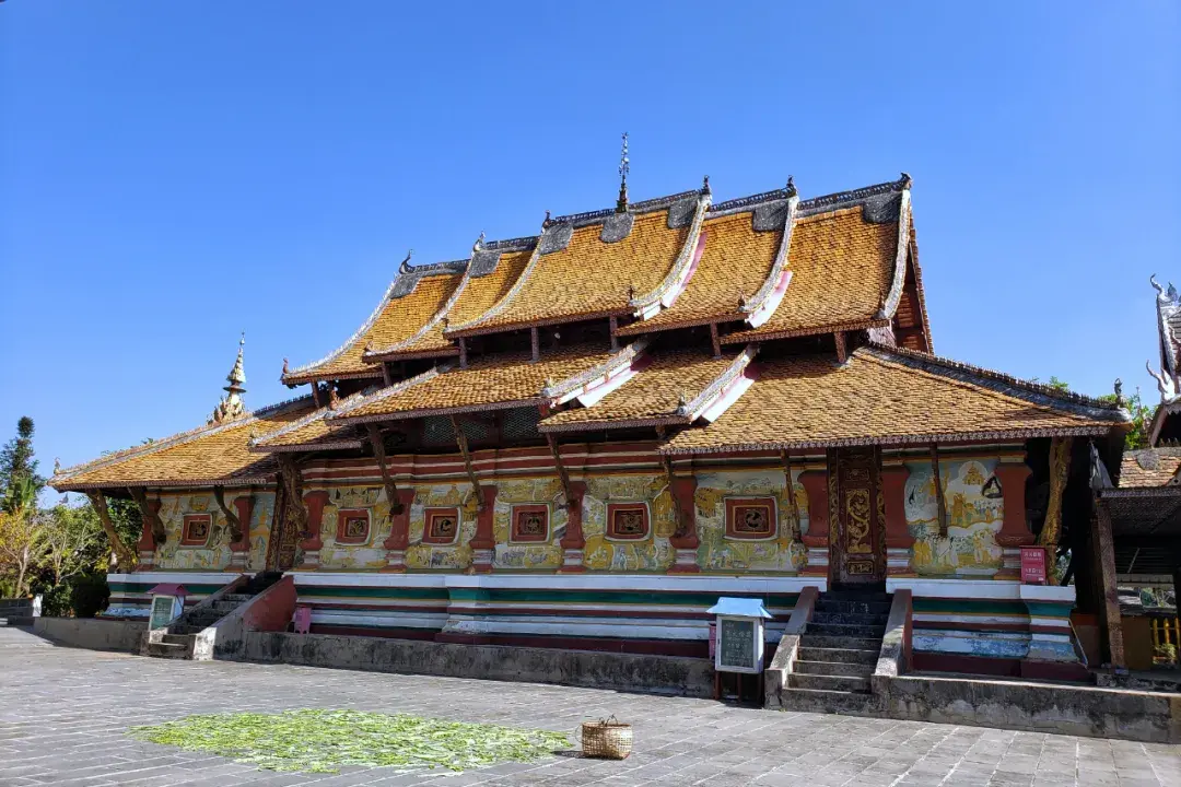 ©谭川遥沿国道继续西行,还会颠末村寨中的曼短佛寺。那是西双版纳又一处游人罕至但极为斑斓的“国保”佛寺,乍一看有点像琅勃拉邦的地标香通寺,大殿都笼盖着宽大的重檐与多坡面的屋宇,粉饰佛塔、飞龙等脊饰,两头高峻的山花墙上描画着精致的斑纹,并在木板上雕镂出各类不祥图案。