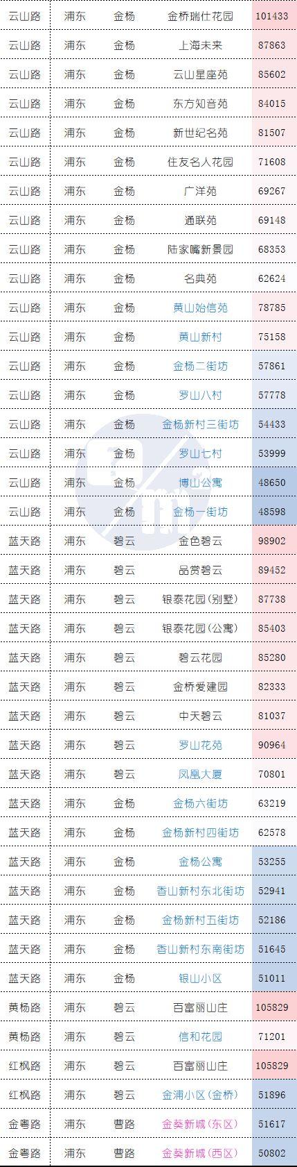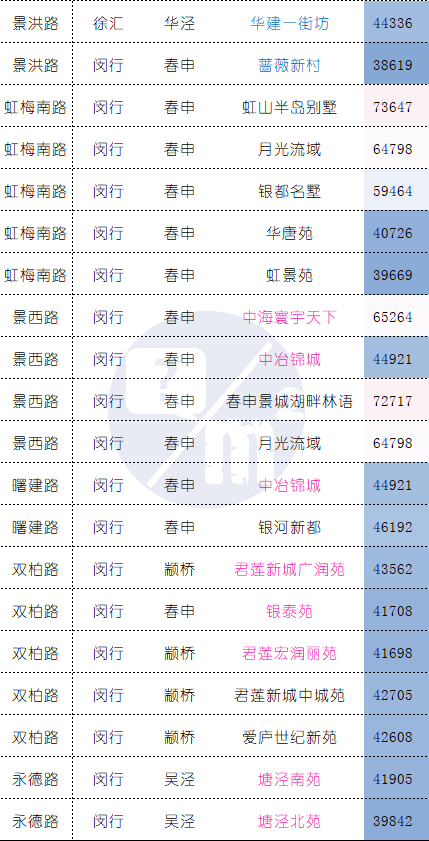 *下表中部门站点挂牌房源少少或无房源,显示价格为空。
