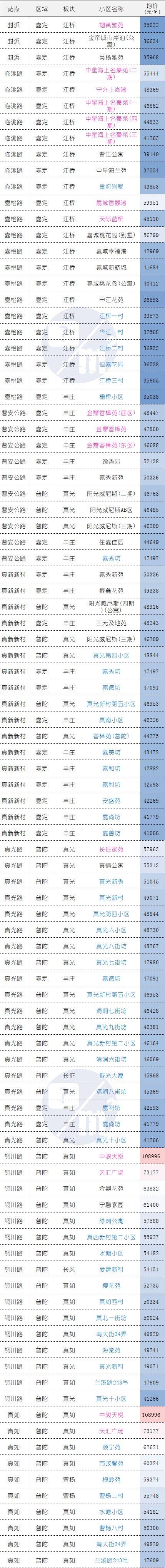 14号线整条线路价差十分大,更高点黄陂南路站的房价是更低点封浜路站的4.9倍。就连车程仅约20分钟的铜川路站与封浜路站的房价也有2.5倍之差。所以考虑在那条线路置业的小伙伴,需要在时间与价格上认实权衡。