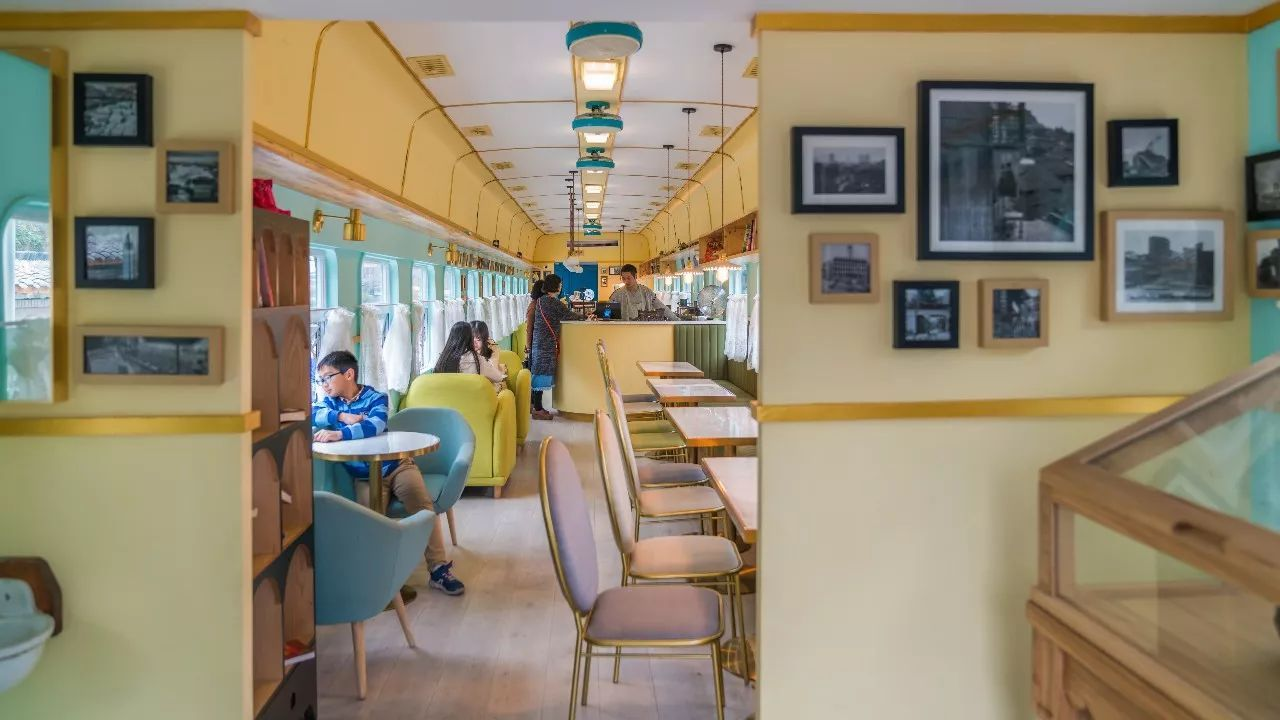 那个咖啡馆从外面看那是一节烧毁的绿皮火车,现实是被革新成的咖啡馆,室内的粉饰很复古,白色的纱窗跟着风飘动,在一个下战书来到如许的一个充满意境的处所,给人的觉得似乎是要去游览。