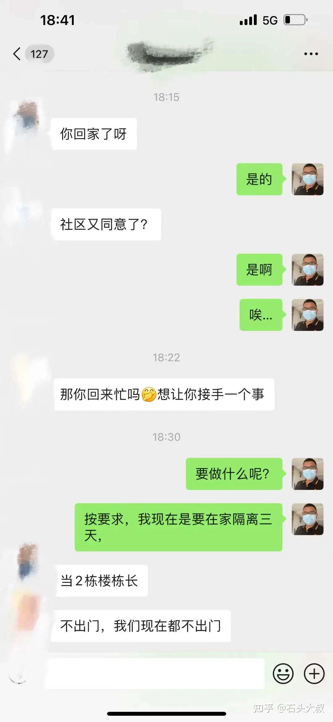 到家后没多久,就领了意愿者的使命,我觉得,仍是要为疫情防控做一些事。那个还好,只要一栋楼,想想前次去当意愿者的时候,一小我维护14栋楼的微信群,每天从早上8点到凌晨两点根本上都在回群里的动静,连吃饭都是看着群动静的。